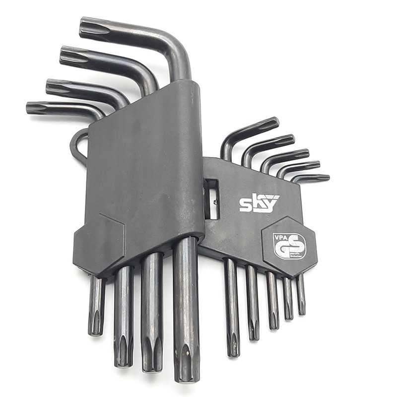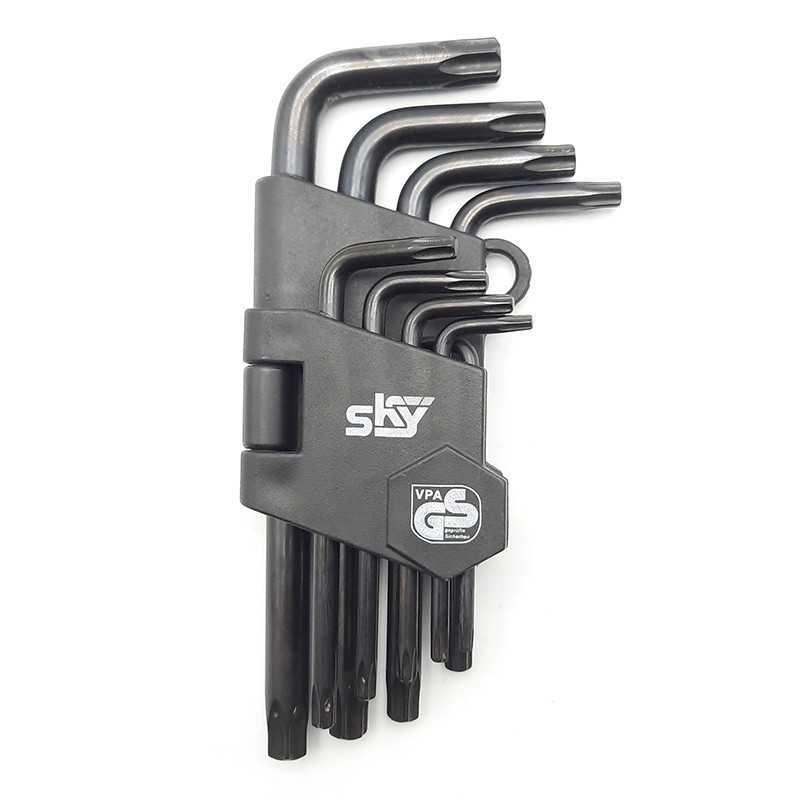آچار آلن کوتاه ستاره ای L شکل مدل ST-1211B اسکای (SKY) یک ابزار دستی است که برای گرفتن و گشودن پیچها و مهرههایی با سر یا نوک ستاره ای مناسب است. این آچار از جنس کروم-وانادیوم ساخته شده است و دارای 9 عدد سایز مختلف میباشد.