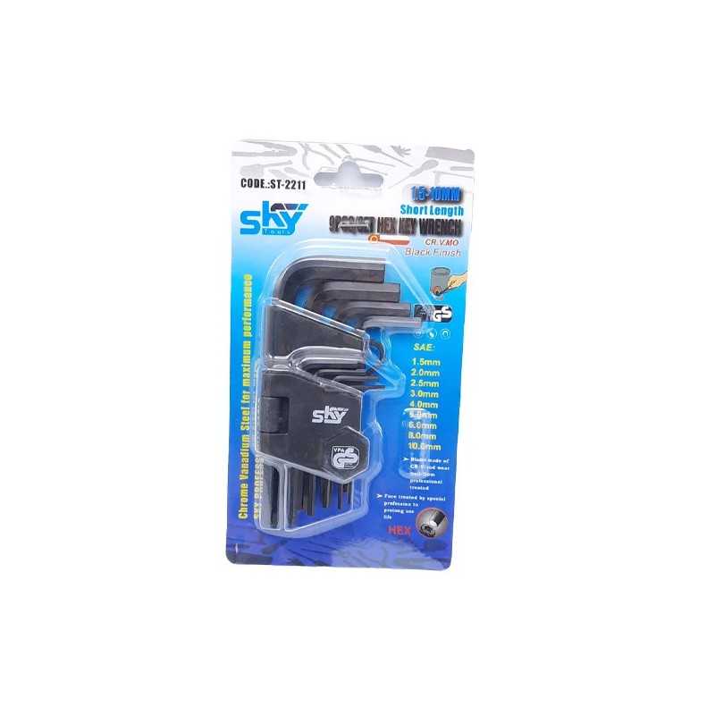 آچار آلن کوتاه شش گوش روکارتی 9عددی اسکایSKY مدل ST-2211B