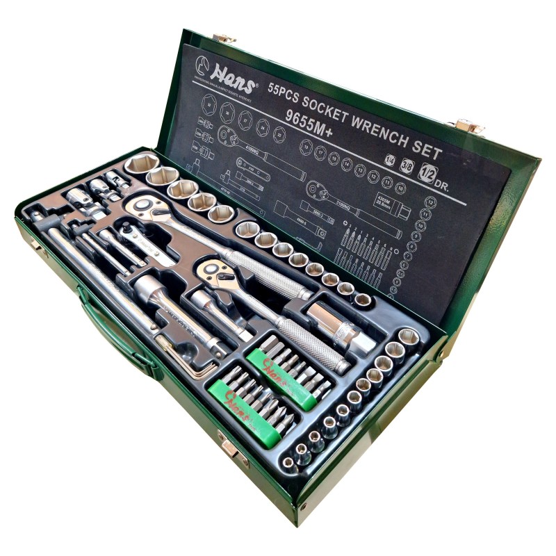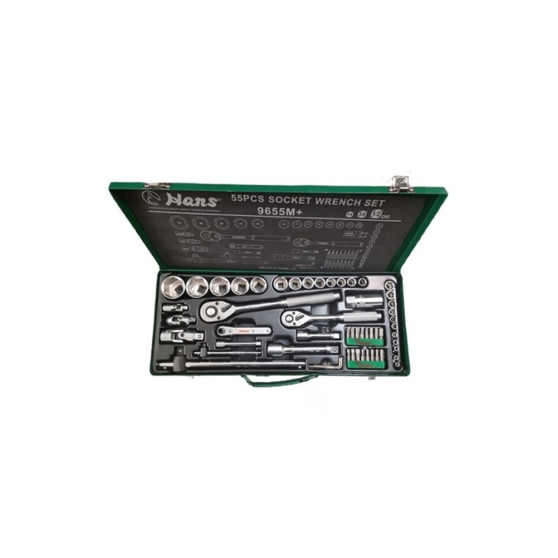 جعبه بکس 55 پارچه درایوهای 1/4و 3/8 و 1/2 هنس HANS مدل 9655M+، یک مجموعه ابزار دستی است که برای استفاده در صنایع و کارگاههای صنعتی طراحی شده است. این مجموعه شامل 55 پارچه در سه درایوی 1/4، 3/8 و 1/2 اینچی میباشد.این جعبه بکس دارای پارچههای مختلفی با اندازههای مختلف از 4 تا 32 میلیمتر است که به راحتی بر روی درایوهای مختلف قابل تعویض هستند. همچنین، پارچههای این مجموعه دارای طراحی مقاوم و با کیفیت بالا هستند که قابلیت تحمل ضربات و سایش را داراست.