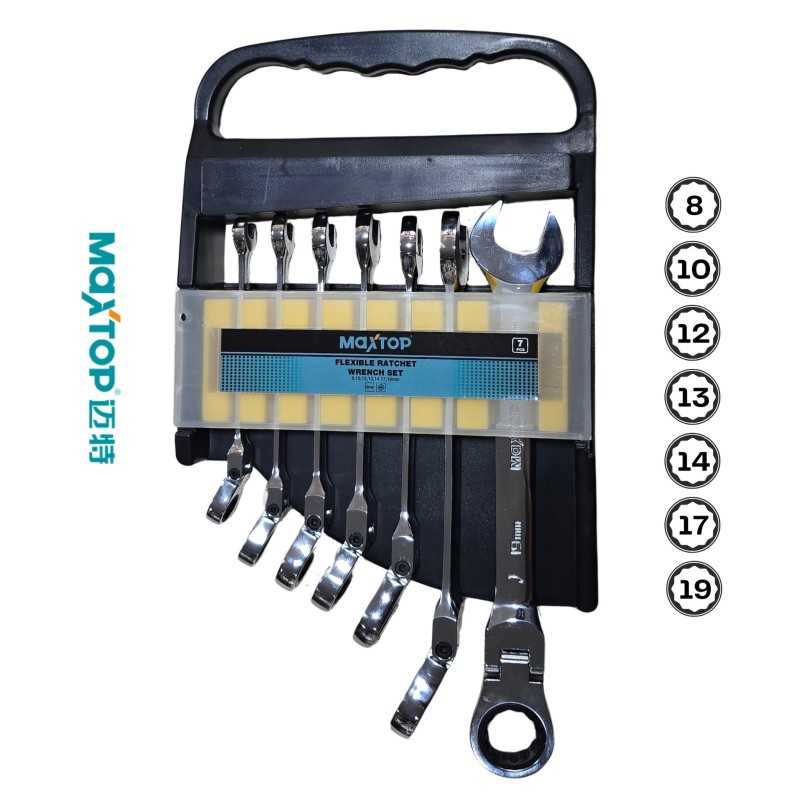 ست آچار 7 عددی یکسر جغجغه ای لولایی بلند Maxtop یک ابزار دستی است که برای استفاده در کارهای مکانیکی و تعمیرات عمومی مورد استفاده قرار میگیرد. این ست آچار شامل هفت عدد آچار با اندازههای مختلف است که به منظور استفاده در اتصالات پیچ و مهرهها با اندازههای متفاوت طراحی شدهاند.