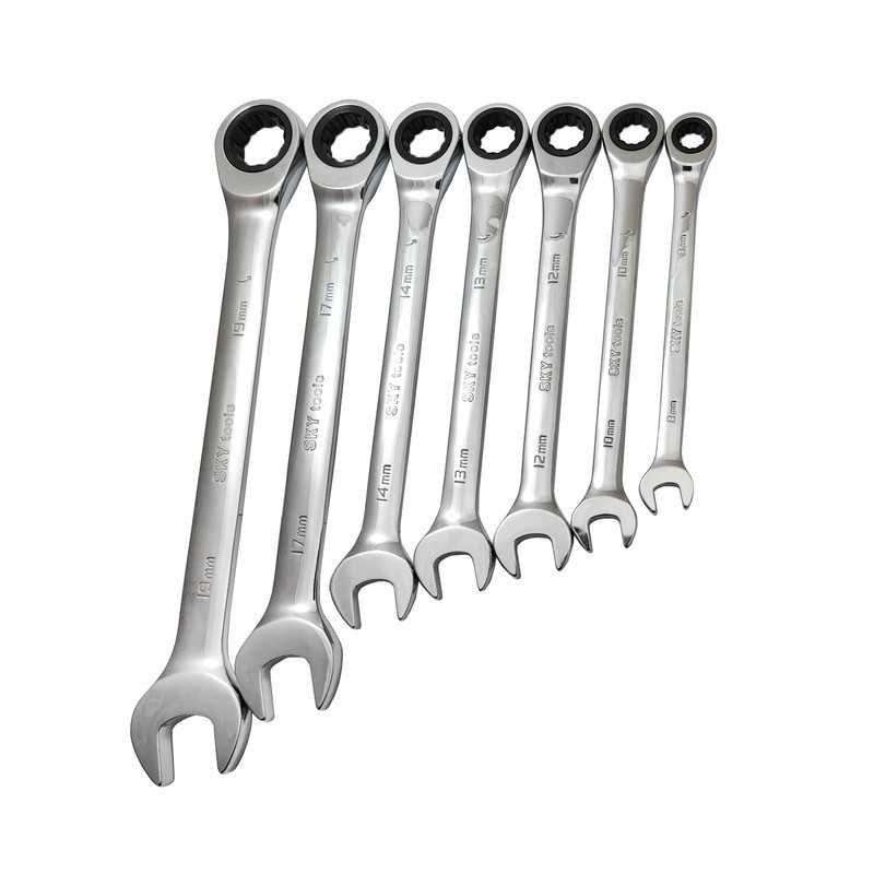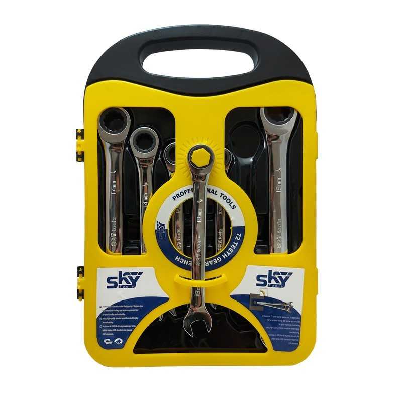 مجموعه 7 عددی آچار یکسر جغجغهای اسکای مدل 72T یک ست شامل 7 آچار با سایزها و اندازههای مختلف است. این مجموعه آچارها از جنس فولاد کروم وانادیوم با کیفیت بالا ساخته شده است و برای کارهای مختلفی مانند تعمیرات خانگی، فنی و صنعتی قابل استفاده است.