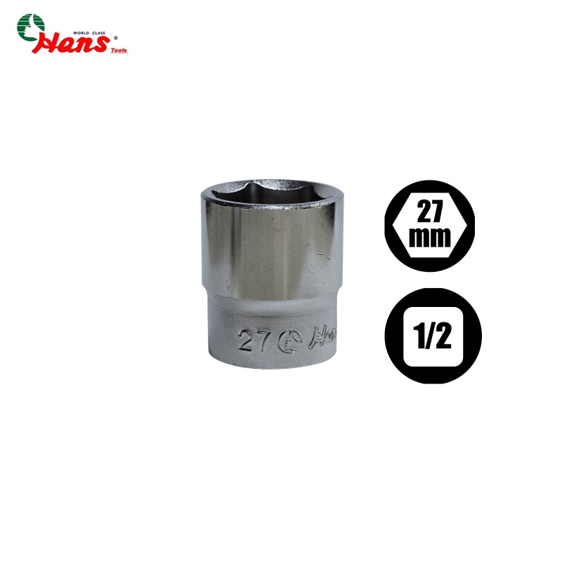 بکس کوتاه 6 پر درایو 1/2 سایز 27 میلیمتر از محصولات شرکت هنس (Hans) است. این بکس کوتاه با طراحی شش پر مناسب برای پیچ و مهرههای با سایز 27 میلی متر میباشد.