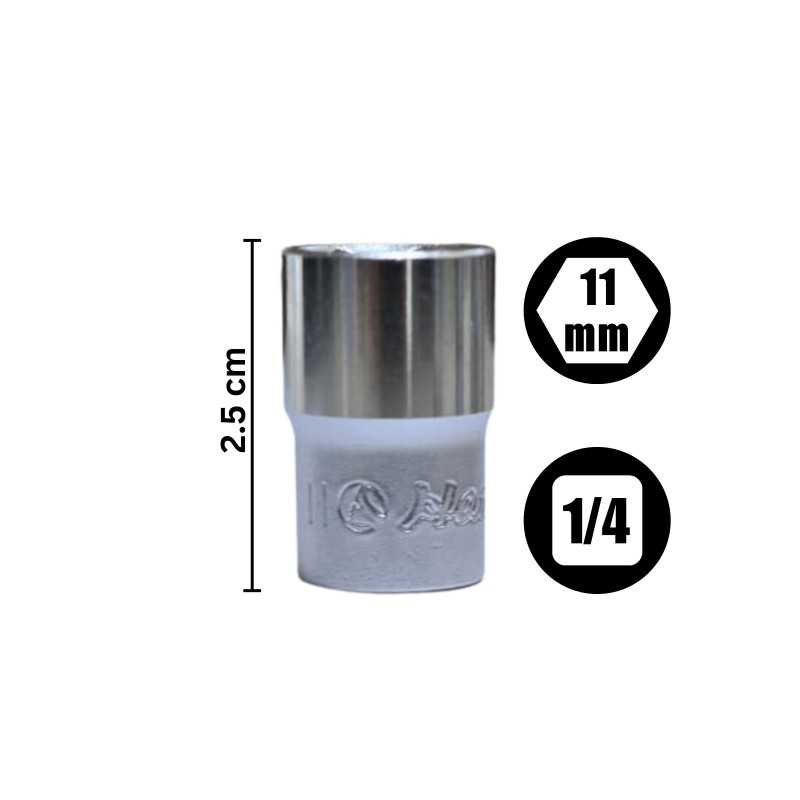بکس کوتاه 6 پر درایو 1/4 سایز 11 میلیمتر از محصولات شرکت هنس (Hans) است. این بکس کوتاه با طراحی شش پر مناسب برای پیچ و مهرههای با سایز 11 میلی متر میباشد.