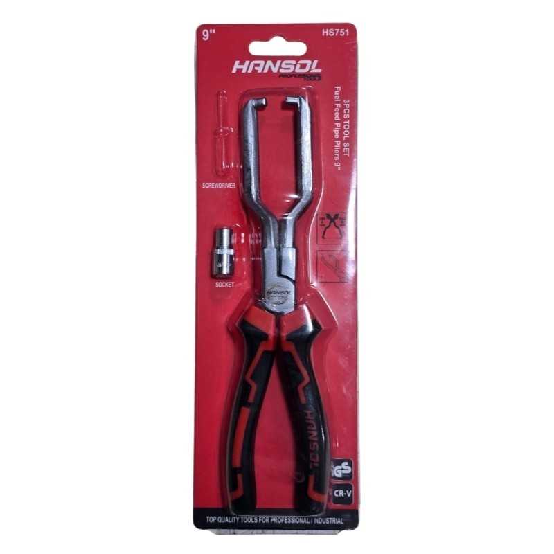 انبر سوکت بنزین و آچار سوکت ریل سوخت هانسول HANSOL مدل HS751، ساخت چین می باشد که با کیفیت بالا تحت لیسانس هنس تایوان می باشد. انبر سوکت بنزین مخصوص سوکت های ریل سوخت با دسته روکش دار ارگونومیک و جنس دسته این محصول کروم وانادیوم می باشد.