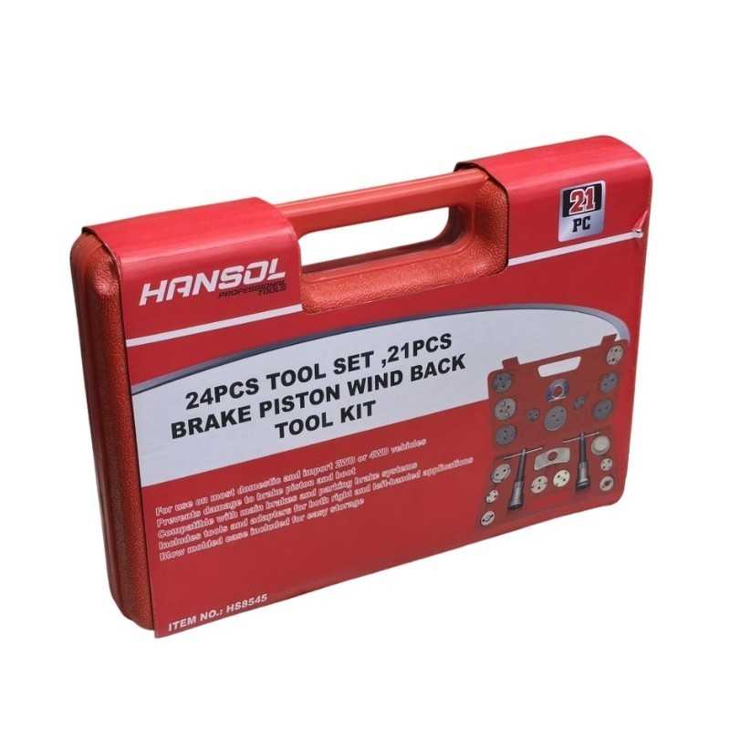 ابزار کیت کایپر ترمز Hansol شامل ابزارالات مخصوص کالیبراسیون ترمز میباشد که از آلیاژ کروم وانادیوم ساخته شده که در برابر فشار کاملا مقاوم و بادوام میباشد این ست ابزار شامل 21 قطعه می باشد.