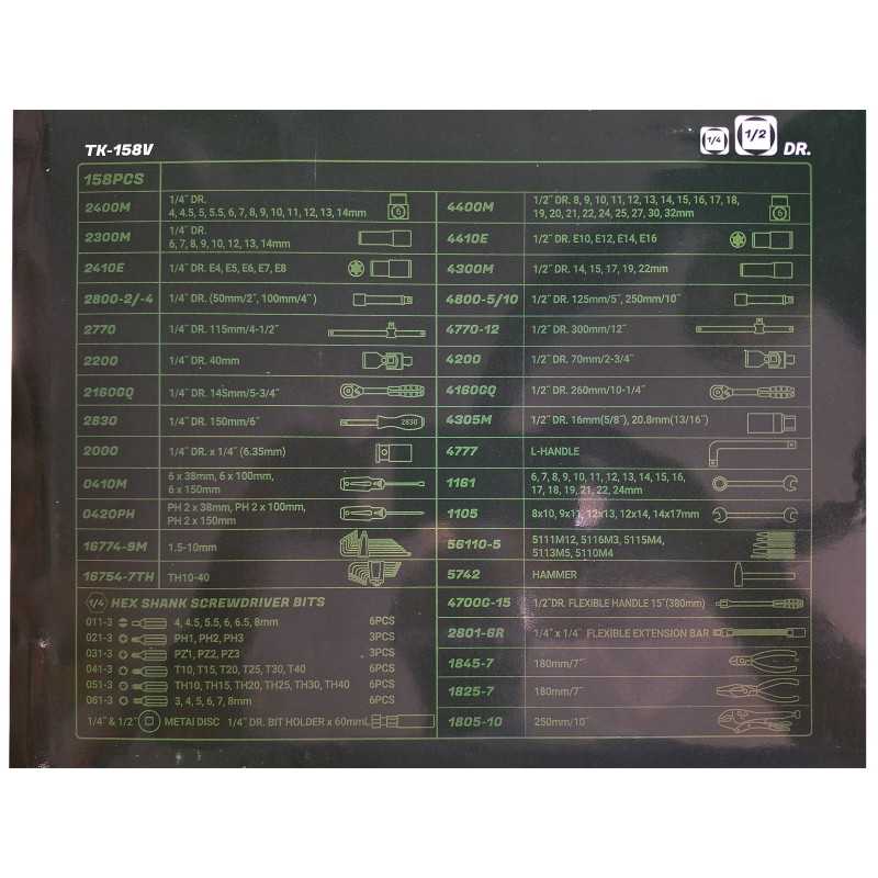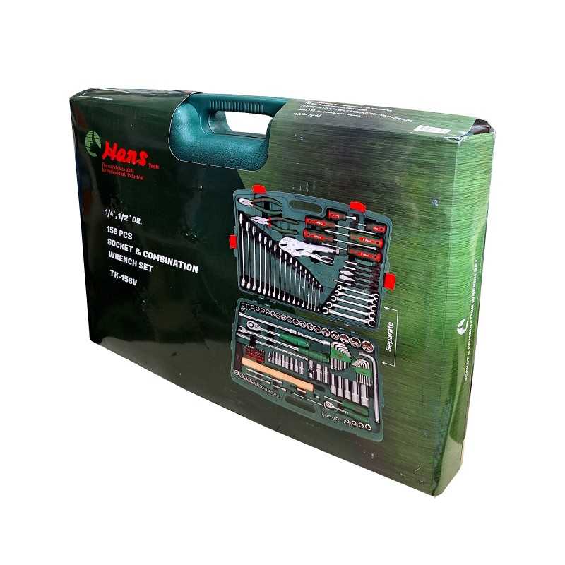 مجموعه کیف ابزار 158 پارچه برند هنس Hans مدل TK-158V، ساخت کشور تایوان بوده و داراری کیفیت بالایی می باشند.این مجموعه با طراحی ارگونومیکی که دارند باعث انتقال حس خوب به شما هنگام استفاده می باشد.