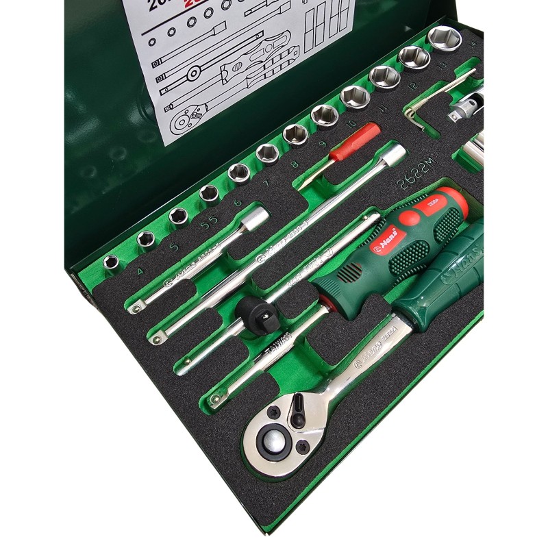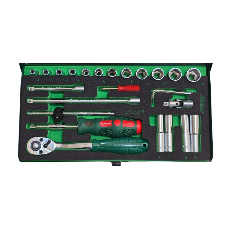 جعبه بکس 26 پارچه درایو 1/4 کوتاه و بلند مدل 2622MPQ هنس (Hans) محصول کشور تایوان.