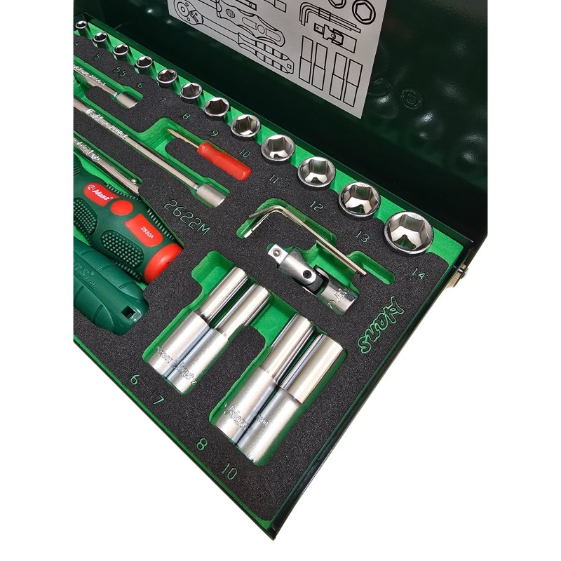 درایو 1/4 اینچ به معنای قطر درایو این ابزار است که با درایوها و ابزارهای با قطر 1/4 اینچ هماهنگی دارد. این نوع درایو معمولاً برای کاربری های دقیقتر مورد استفاده قرار میگیرد. در این جعبه بکس مدل 2622MPQ، درایو 1/4 اینچ با بکس های کوتاه و بلند در دسترس است، که به شما امکان استفاده از بکس ها با سایزهای مختلف را میدهد و با توجه به نیازهایتان میتوانید از آن استفاده کنید.